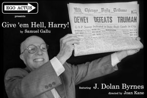 Now they are cleverly voicing political opinions – not in protest but with a simple example. They’ll give no credence to deficient examples of the presidency… they’ll hand us a story of a REAL president. Ego Actus’ production of Give ’em Hell, Harry! holds a candle up to the nature of Harry S. Truman. A president interested in war … as in ending it.