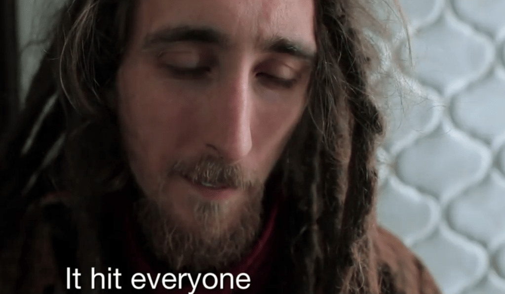 Joshua Wallace starts us off with command as an American – looking like a student – whose only friend is a recording devise allowing him to philosophize his terror; Eli Sundler perfectly sets us up to go around the world looking the part of a poet from a far-off land writing his final prose of the end of the world. Sundler gives us the feel of art dying; Chantal Casutt – particular devastating as a young french girl in the throughs of dying from this disease. Vacillating between madness and introspection the rash-ridden Casutt was a disconcerting harbinger of things to come for them all; Mariana Sanjuan, face dirty, sitting in front of a chalk board counting the days of loneliness, tells a story with the power one might feel when talking of any war; and Yijing Liz Song as a young woman who seems to be living in total terror. One might think that if she feels so alone why must she cower in the corner … what is she waiting for?