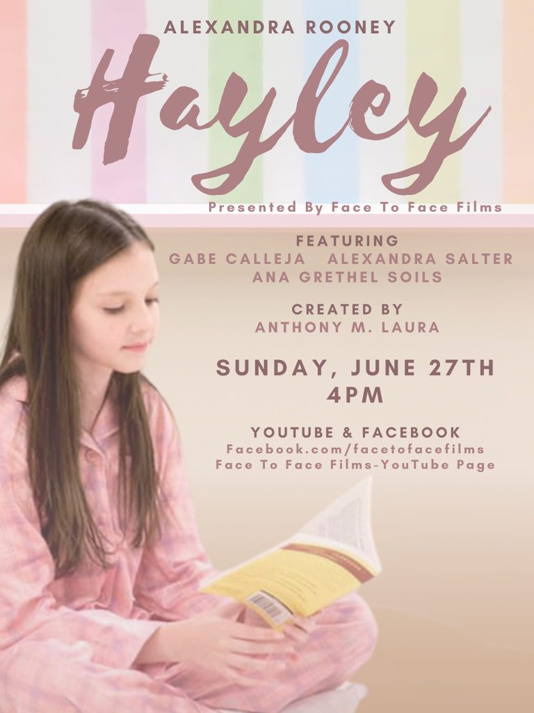 And closing the season will be another Anthony Laura work entitled Hayley, a one-person show, featuring Alexandra Rooney. This will air on Facebook on June 27, also at 2:00 p.m.
