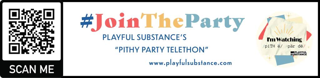 Their Pithy Party is an annual event putting Playful Substance’s writer’s groups in the spotlight with staged readings featuring excerpts of works in progress directed and read by company members and friends. This year’s event was roughly four hours long and showcased 10 writers, 10 directors and 30 cast members. The live performances were spread out over 3 seatings. The online performance featured bonus content such as artist interviews and a more in-depth look at Playful Substance.