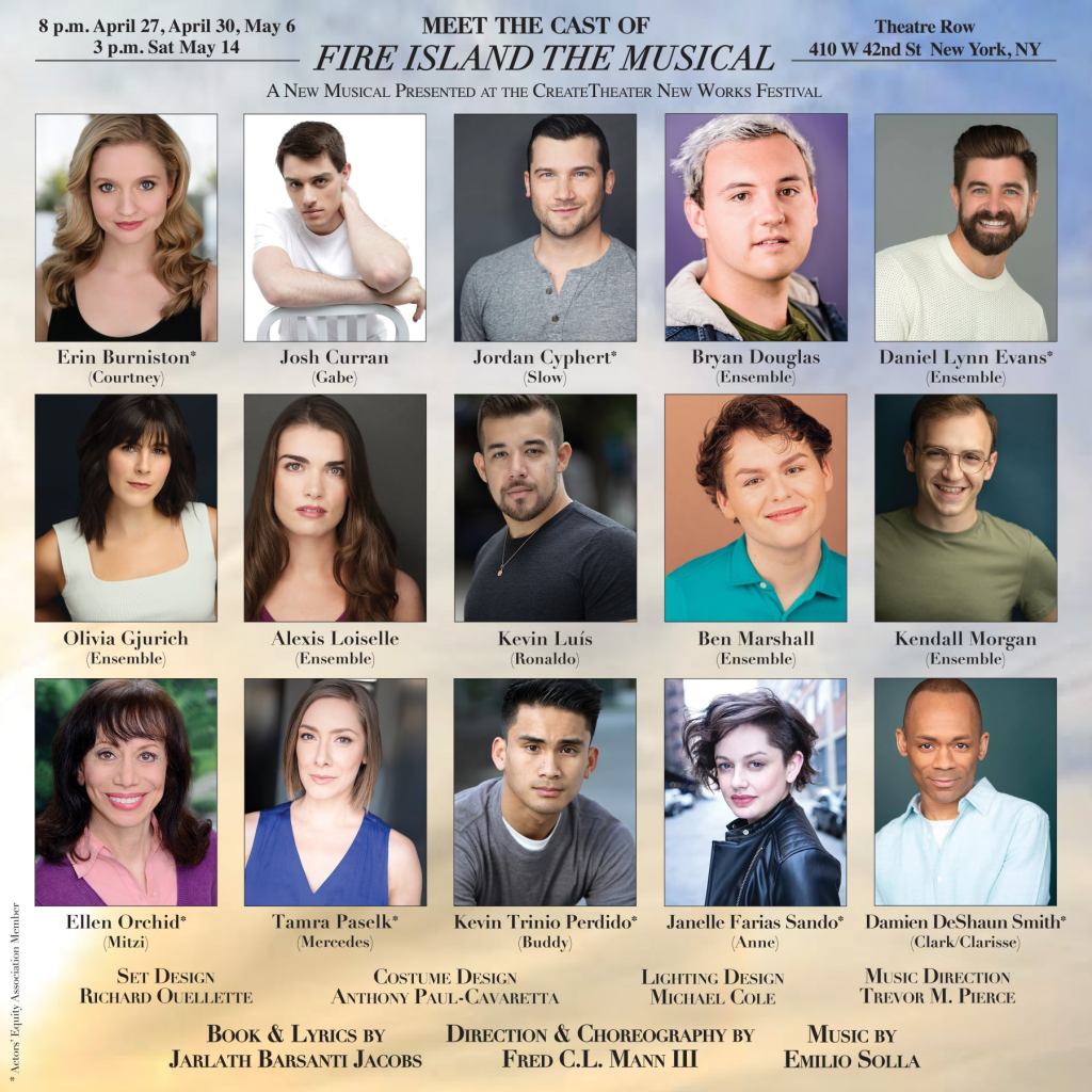 Audiences are loving FIRE ISLAND THE MUSICAL! Grammy-winner Emilio Solla and Jarlath Barsanti Jacobs’s musical a hit at Create Theater’s New Work Festival on Theatre Row, running through May 14 at 410 West 42nd St. (Theater Four) Directed & choreographed by Fred C.L. Mann III with musical direction by Trevor M. Pierce. Richard Ouellette designed the set; Anthony Paul-Cavaretta created the costumes; and Michael Cole designed the lighting. The production features projections by Peter Leibold VI and Paul Deziel. Jesica Garrou is production stage manager.