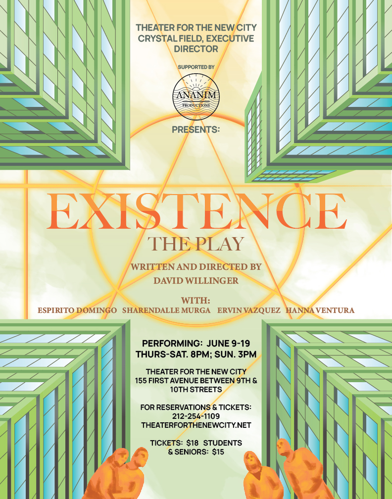 “The play is called EXISTENCE, and I wanted to rush headlong into encompassing as many parts of life as could be crammed into an evening of the theatre, from the most mundane to the most sublime. But really, I wanted to find a way to theatricalize a group of people trying to “break on through to the ‘other side,’ “to discover even in their immediate surroundings, actual openings onto a world beyond the one we know through the senses and reason. How can you put that on stage? The classical Greek, Medieval and Elizabethan playwrights just went for it, using the dramatic vocabulary of their times. I felt strongly that we can too and so created an armature to enable it, in this case the essay contest – who can best express the nature of existence? Instead of writing their essays these ne’er-do-well philosophy students go out and seek out apertures to the beyond, right in the dead-ends, parks and vacant lots of New York City.” The inspiration behind the play took place during leisurely strolls around the city and stopping to smell the roses. “I guess it came to me throughout the Covid period where I’d stroll and find spots I’d never discovered or noticed in Central Park, High Bridge Park, the Greenwood Cemetery, even though I’ve lived so close to them most of my life right here!”