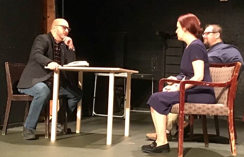 The powerful cast expertly directed by Laurie Rae Waugh were all ideally matched to their characters. Ken Coughlin gets an A+ for his fabulous portrayal of the mercurial Walter. His stage experience shows. He made an excellent military man in Banned in Bisbee and a completely credible college professor in this. He looked the part and he gave his all in the part. Amanda Cannon goes right to the head of the class with her villainous portrayal of Annette. She’s so good at being so bad, trust me, you’ll root for Walter! From The Merry Wives of Windsor to this, Michael Bordwell provided another acting slam dunk. He rolled a lot of traits into his portrayal of one of the department professors, Steven. He was slimy, savvy, likeable, not likeable and more. Overall, the character was out for himself but there was a tiny bit of heart directed at Walter. It was an excellent portrayal. This was the third time I witnessed a performance with Manny Rey and he is always solid. He was authoritative and funny in his portrayal of the college provost. The cast was rounded out by Vicky Gitre, Ben Guralnik, Alan Charney and Rooki Tiwari who were all fantastic. Every character brought to life was genuine and interesting.
