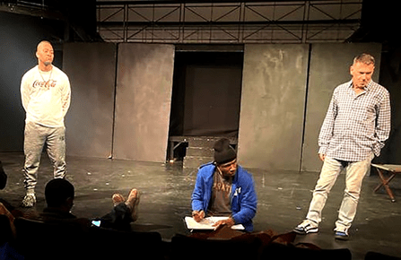 I walked in early enough to catch the Writer/Director, Kenthedo Robinson, a truly talented man. Also, the Lighting Technician and various cast members preparing. Ms. D (Mamma Miner) being in full rehearsal on her own.