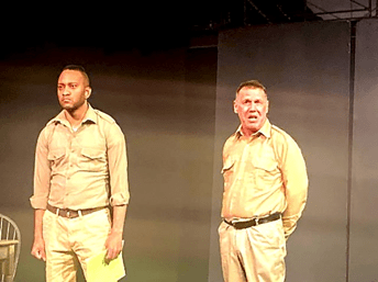 The cast is strong, throughout, and Mr. Ray I would say a great lead for this play. All entrances and characters were strongly identified by the actors. Particularly in Act I. Some small uneven moments in scenes as the play progressed, not as distracting to most audience members, I would think. Just as a theatre professional, fixable with tightening; the unevenness could be removed by a bit more focus to the story. Michael Julius who had a wonderfully diverse character as Franklin B. Seymour, fantastically portrayed an act of being abused very well. Yet, in describing the actual horrid act by fellow white soldiers, he lost a bit of the anger of the act. Where it seemed his anger should be growing, his ebbed during the description of the act. The event that drove him to the anger. I would have liked to see that description itself to be expressed even more strongly. Julius chose to express it more like an observer, at the moment, it would seem better to grow more there, instead of using it as calm recall.