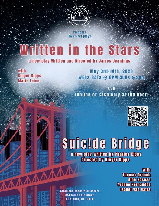 He also is an artist in his own right, as a playwright, and his latest effort–‘Written in the Stars’, a short one-act, is book-ended with the longer one-act ‘Suicide Bridge’, written by Emmy-Award Winner Charles Kipps.