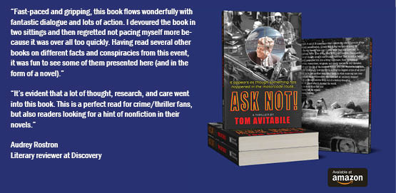 Of course, he would… Tom Avitabile is a renowned writer, director, and producer with numerous film and television credits who seems to specialize in thrilling us. It’s not enough that he wrote a taut adventure about Kennedy but he now travels the podcast-sphere sharing his take on the actual event and the conspiracy around it. His extensive background in computers and engineering led him to work with the House Committee on Science Space and Technology. Tom’s powerful imagination, fed from his experiences in Washington, allowed him to conjure up not only possible security threats, but also real-life scenarios relating to how the government and individuals would respond to the high-tech assaults that are featured prominently in his three book “thrillogy.” These novels chronicle the exploits of Science Advisor to the President, “Wild” Bill Hiccock. The first techno-thriller of this series, The Eighth Day, became a Barnes and Noble #1 bestseller. In his next thriller, The Devil’s Quota, Avitabile departs from the high-tech genre and sheds daylight on an evil international syndicate, a story of sexual deviation, greed, human trafficking, and corruption.