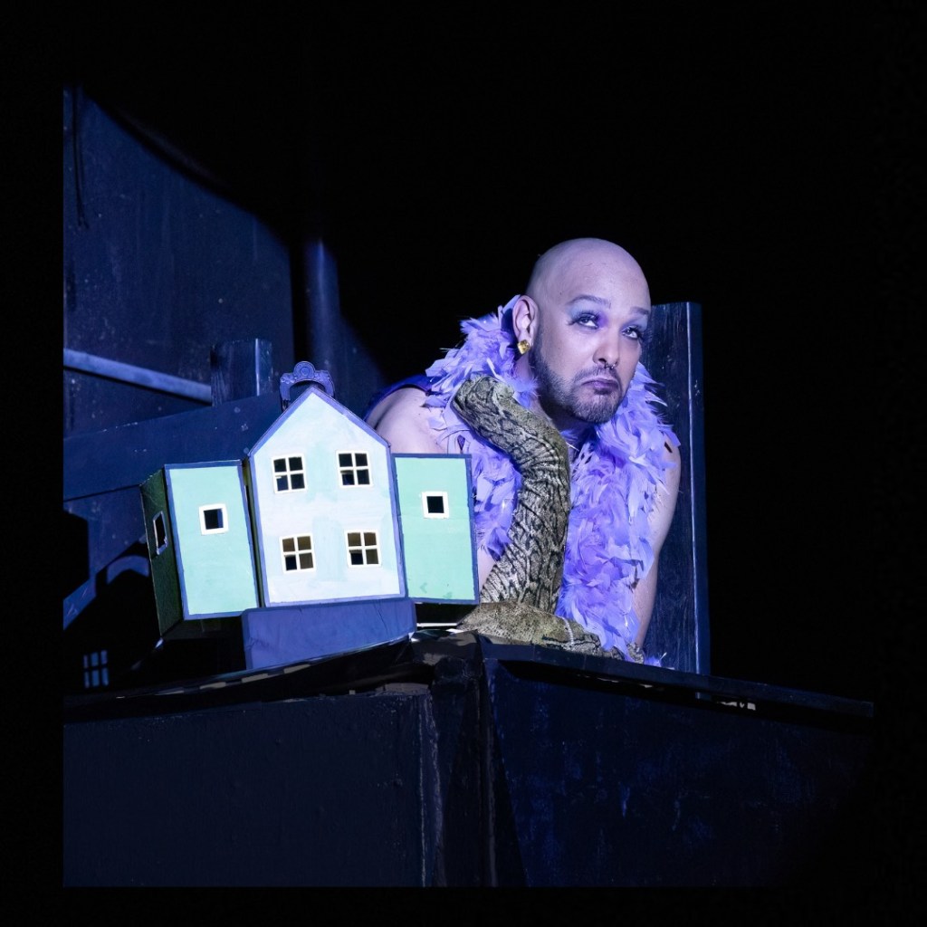 As events unfold, Miss Dee watches from the balcony from behind a dollhouse, symbolizing a God’s Eye View of events (or in this case, perhaps the opposite supernatural being). The effect is a brutal indictment of human greed, the current state of the housing market, and the willingness of the privileged to ride to success on the backs of the impoverished.