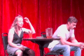 Now without a father and essentially without a mother, Faye feels abandoned by God as well. She devises her own deity out of a dead animal she found on the road and placed in a paper bag in a refrigerator, below her stash of frozen dinners. The creature is so mangled they can’t even tell what kind of animal it was (they decide on probably bunny), but Faye and later Eden are entranced by its appearance and even its stench of decay. They suddenly find a tangerine in the bag with the animal and declare it to be a miracle. The grounded Georgia is of course disgusted and condemns the horrific turn of events; she is also clearly threatened by Faye and Eden’s growing bond, which is now being solidified by Eden’s joining Faye’s new religion. Georgia is a Regina George in “Mean Girls”-type but is realized in three dimensions by Giorgia Valenti. The sassy, cynical Georgia can’t hide her insecurity and jealousy; it’s clear that her insults towards Eden are coming from that place. (The cast rotates throughout the run; Müller alternates as Georgia when Luisa Galatti appears as Faye.)