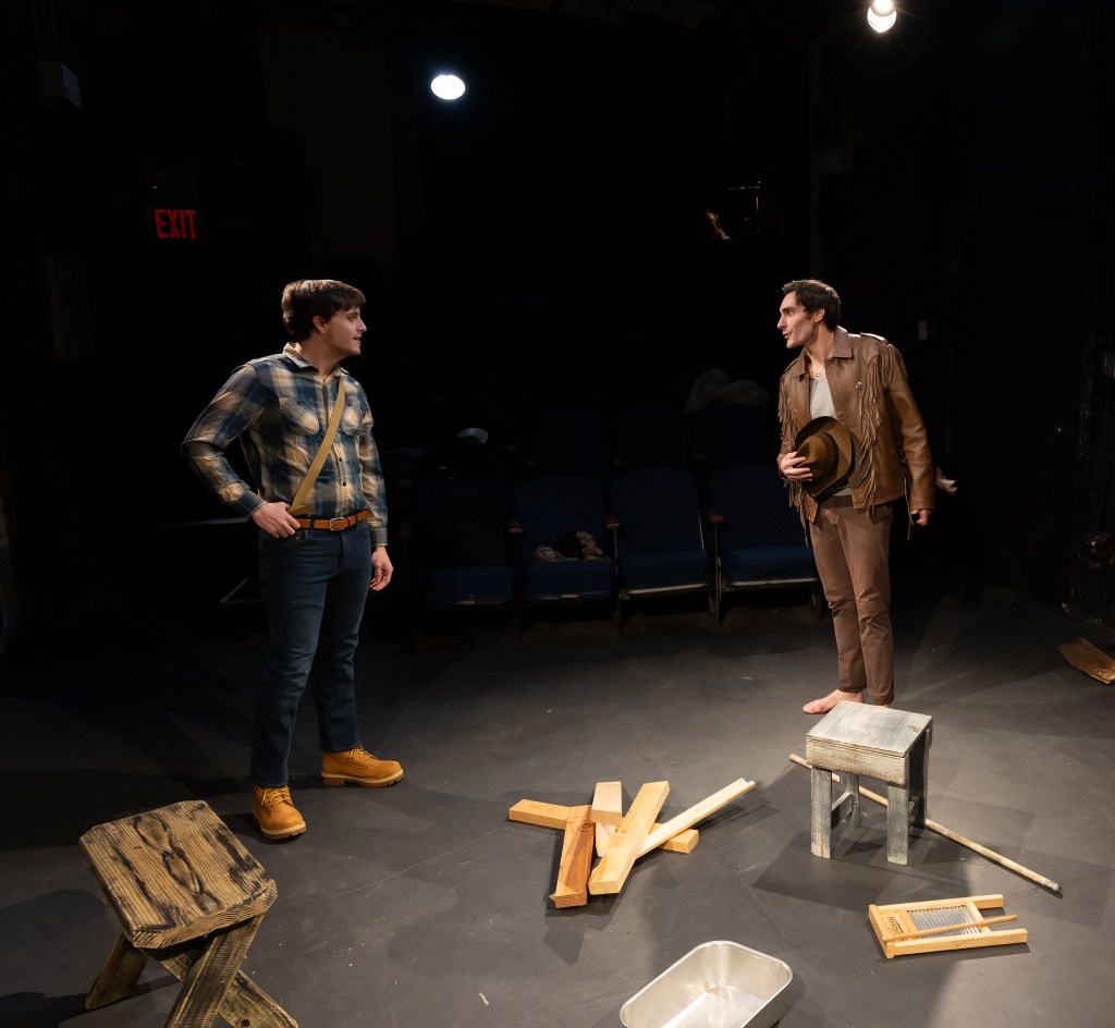 Beebe excels as the haunted Sloan, conveying the heartbreak of a man utterly destroyed but determined to find the high road and get on it before he does something he’ll regret. Travis Bergmann provides a stunning contrast as the high-energy Jack, his jubilance contrasting with Sloan’s despair. The piece ends quickly and satisfyingly, and is well-realized by Director John DeBenedetto and the actors.