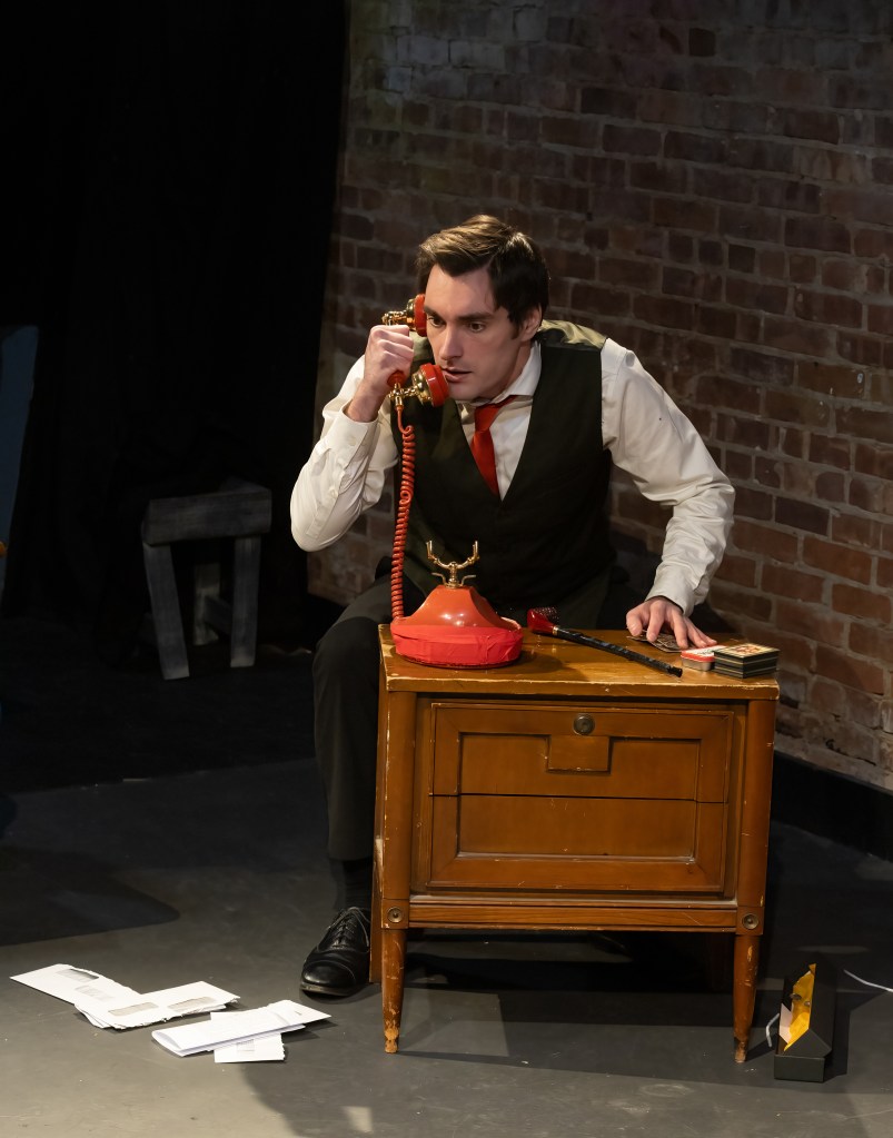 The Soap-Operatic Recklessness (also directed by DiBenedetto)quickly follows, just as it did in 1913. Bergmann is dramatically different here from the jovial Jack as the wealthy, brusque Arthur Baldwin, husband of Mildred (Natasha Sahs). There is no real love between the upscale Catskills couple, and the unhappy Mildred has found romance instead in an affair with their chauffeur, Fred (Beebe), which began while Arthur was out of town. As with A Wife for a Life, the actors’ skillful depiction of the intense growing tension among the characters as they ride a metaphorical runaway train toward destruction is what drives the melodramatic narrative. Emmy Potter adds more fire as the scorned, scheming maid Jean, whose revenge-minded meddling leads Arthur to make a terrible, vengeance-driven decision. Maurizio is the couple’s butler, who is forced into complicity by Arthur. The road to the shocking denouement is traversed beautifully by the company, from Maurizio’s growing unease to Sahs’ horror and heartbreak, from Bergmann’s ruthlessness to Beebe’s youthful energy. Having A Wife for a Life as the “opener” for Recklessness adds another layer to the audience experience of both, as the callous Arthur’s actions are in stark contrast to the choice made earlier by the more sensitive Sloan.
